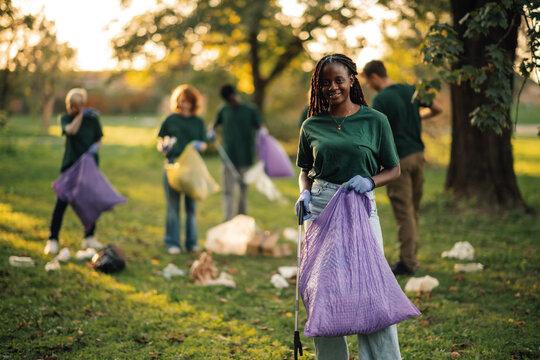 Multiracial people protest against climate change holding signboards in the street. Demonstration to save the planet.