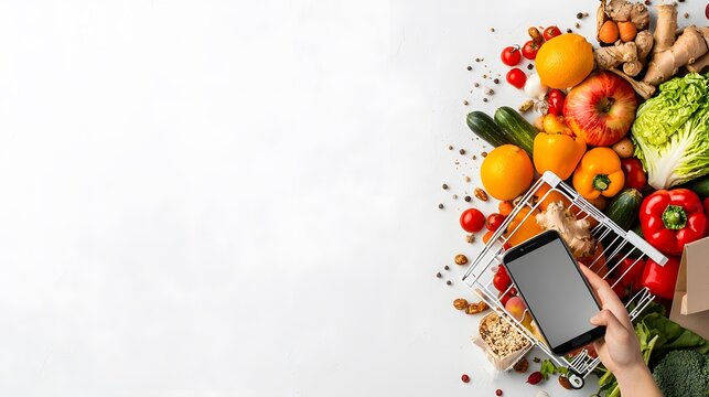 Online grocery shopping experience home digital interaction kitchen close-up convenience
