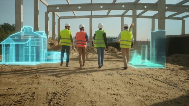 Construction workers are walking on a construction site