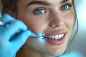 Dental hygienist using ultrasonic scaler for thorough teeth cleaning and plaque removal