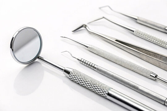 Close-up of a dental scaler tool on a white background. Ideal for medical, dental, or healthcare related projects.