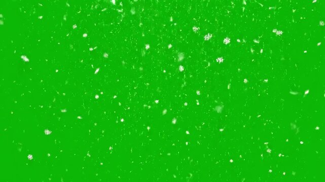 Gentle Snowfall with snow falling on green screen background distortion, overlay, glitch, static noise, scan lines black background, 4k animated video loop