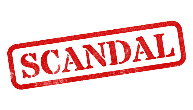 Scandal red rubber stamp isolated on transparent background with distressed texture effect