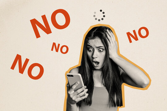 Composite sketch image artwork collage of silhouette shocked lady staring read in social media scandal fake news expression emotion