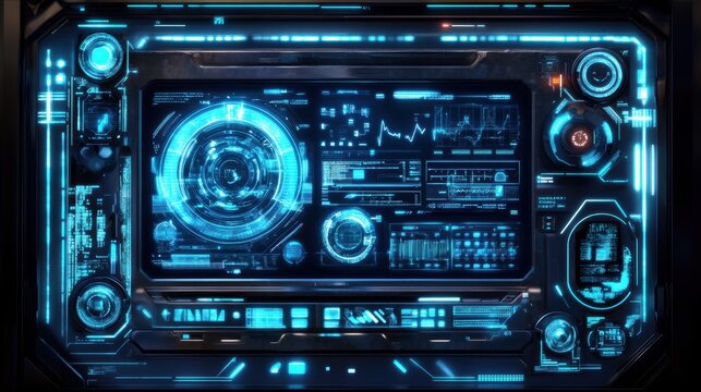 Futuristic dark background with scanning radar and heads-up display interface elements