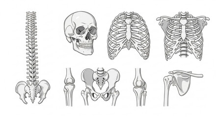 Anatomical illustration showing the human skeleton including skull spine ribs and various other bones created with generated ai