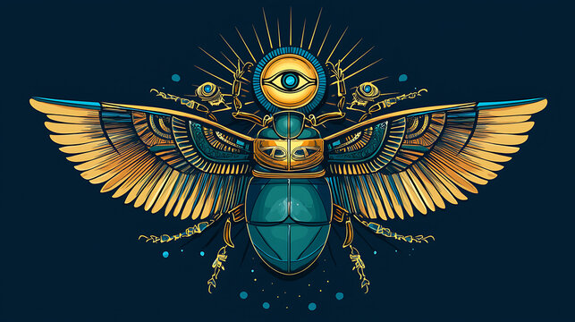 egyptian sacred Scarab wall art design. beetle with wings Vector illustration logo, personifying the god Khepri. Symbol of the ancient Egyptians