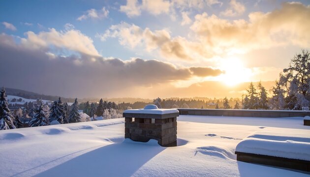 Winter Solitude - Snow-Covered Deck at Sunset in the Mountains.