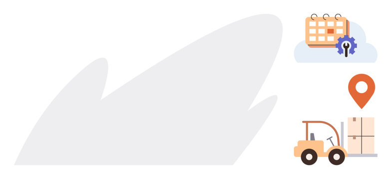 Industrial motor, rotor, video call icon, and calendar symbolizing automated workflow, scheduling, and collaboration. Ideal for technology, engineering, manufacturing productivity planning