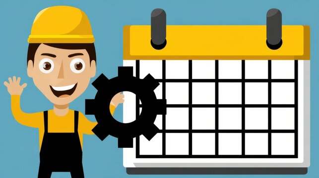 Construction worker scheduling tasks workshop digital illustration informative engaging visual concept