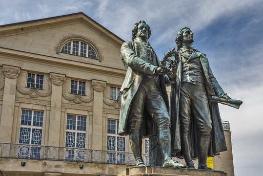 Goethe-Schiller Denkmal vor Deutschem Nationaltheater in Weimar