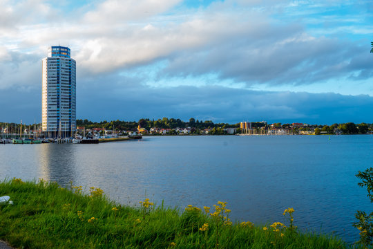 Historic city of Luebeck with Trave river in summer, Schleswig-Holstein, Germany