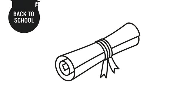 A simple line drawing of a diploma scroll tied with a ribbon next to a back to school icon ai generated