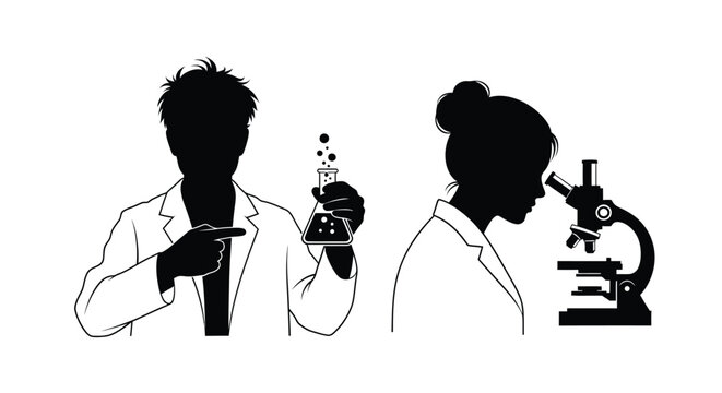Silhouettes of scientists conducting experiments in a laboratory setting