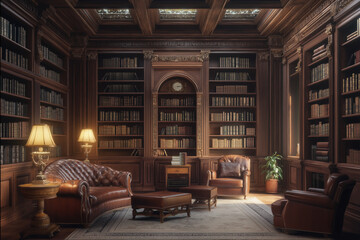 Elegant Edwardian library filled with antique leather tomes and historic charm inspiring scholarly pursuits gracefully.