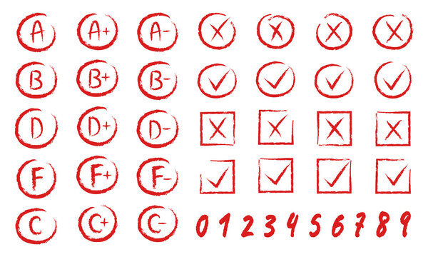 Hands, teacher and marking a test with education, review and feedback in a classroom, learning and study. Person, educator or woman with pen, checking exams or writing with results, closeup or school