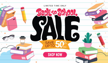 Back to school sale clipart banner design. Back to school sale text in paper space abstract background clip art for students and teachers special offer shopping  discount with drawing educational