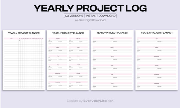 Collection of planners templates. Blank vertical notepad page. Business Organizer. Calendar daily, weekly, monthly, yearly, habit tracker, project, notes, goals. Editable vector illustration