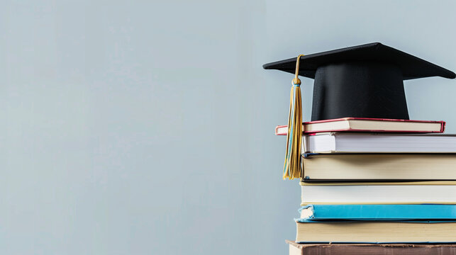 A graduation cap resting on a stack of books