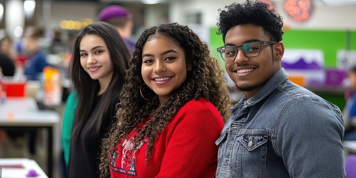 An Indian teenager participating in a school science fair, explaining a project with enthusiasm