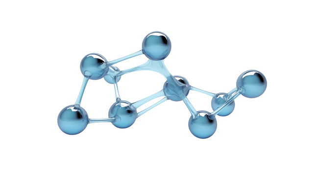 A close up of a molecular structure with blue spheres connected by translucent rods on black backdrop