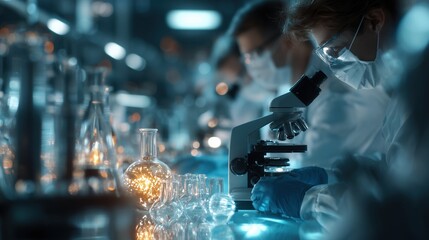 Professional scientists conducting research in modern laboratory