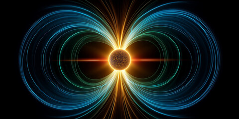 Atomic structure. Scientific breakthrough. Modern scientific research on nuclear fusion. The nucleus of an atom surrounded by electrons on a technological background.