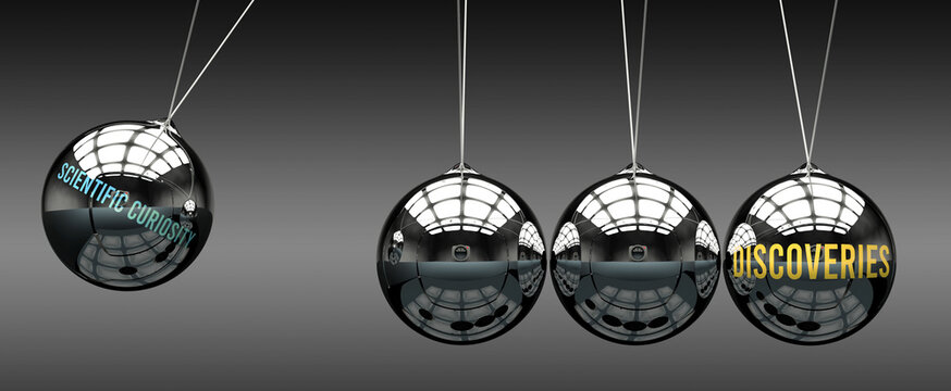 Scientific curiosity leads to Discoveries. Cause and effect relation between them.,3d illustration
