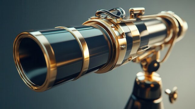 stylized 3d render of a telescope, emphasizing its sleek design and intricate details, representing exploration and discovery in a captivating manner