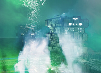 Underwater scientific research station, illustration