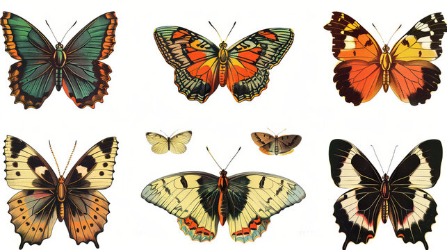 Collection of colorful vintage butterfly illustrations