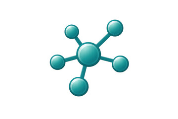 Molecule diagram showing connected spheres, representing scientific concepts, data networks, or abstract connections on transparent background