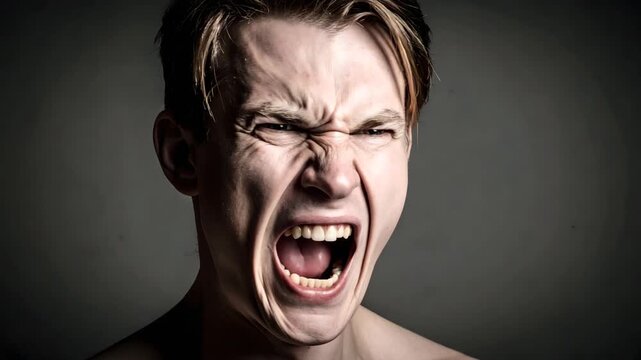 Angry young man with aggressive facial expression