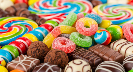 A detailed, close-up shot emphasizing the rich textures and individual uniqueness of various colorful candies found in a local store