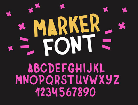 Marker font. Typography alphabet. Handwritten script for party celebration and crafty design.