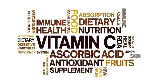 Vitamin C animated word cloud-text design animation tag kinetic typography seamless loop.
