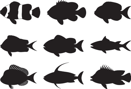 Aquatic Silhouettes A Collection of Fish Outlines for Marine Biology and Underwater Themes