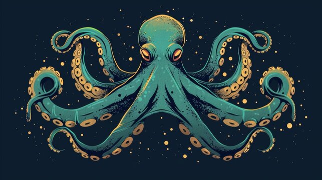 Illustration of an adorable octopus sitting on the sandy ocean floor. Generative AI
