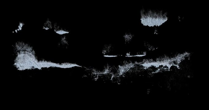 Storm. High waves. White foam on wind. Side view low on water. Wind breaks waves. Splashes