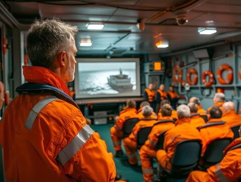 A training session for new seafarers on a ship