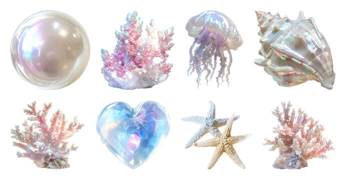PNG Iridescent ocean treasures collection, element set on transparent background