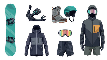 Set of hand-drawn winter sport icons featuring a skier, snowboarder, gondola, mountains, and equipment in a simple black and white doodle style for seasonal recreation