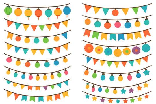 Colorful decorations with lanterns and banners for a celebration or festival setting in a bright and festive atmosphere
