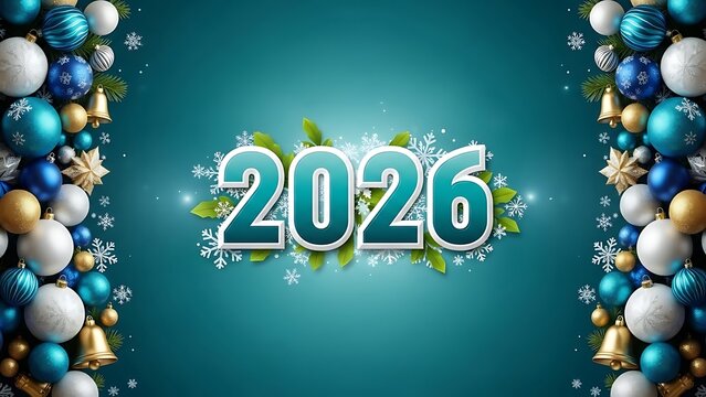 Festive teal background celebrates the arrival of the new year 2026