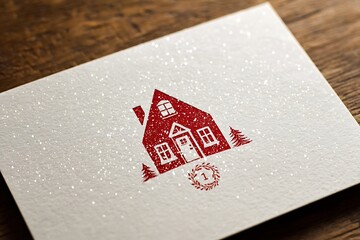 A festive red house illustration with glittery snow and an advent wreath, perfect for holiday greetings and seasonal cheer.