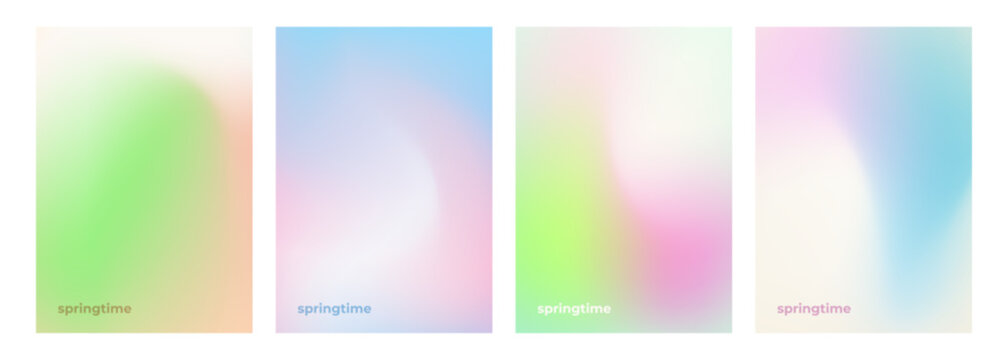 Set of springtime theme defocused backgrounds with blurred color gradients. Templates for creative Spring season graphic design. Vector illustration.