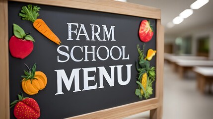 Farm school menu sign, showcasing fresh produce and handwritten style, perfect for educational settings