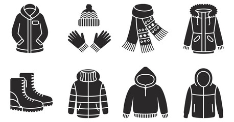 Clothing and apparel icons set featuring fashion garments casual wear formal outfits seasonal accessories retail shopping laundry textile and wardrobe elements