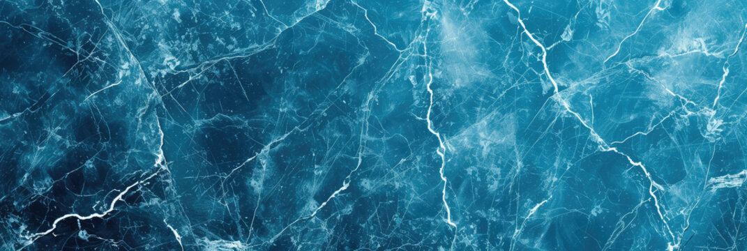 Beautiful winter natural blue ice texture of surface of frozen. Nature abstract pattern of white cracks. Winter seasonal background, mock up, flat lay, ice texture background,ice banner