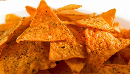 A close-up shot of crunchy, seasoned tortilla chips.